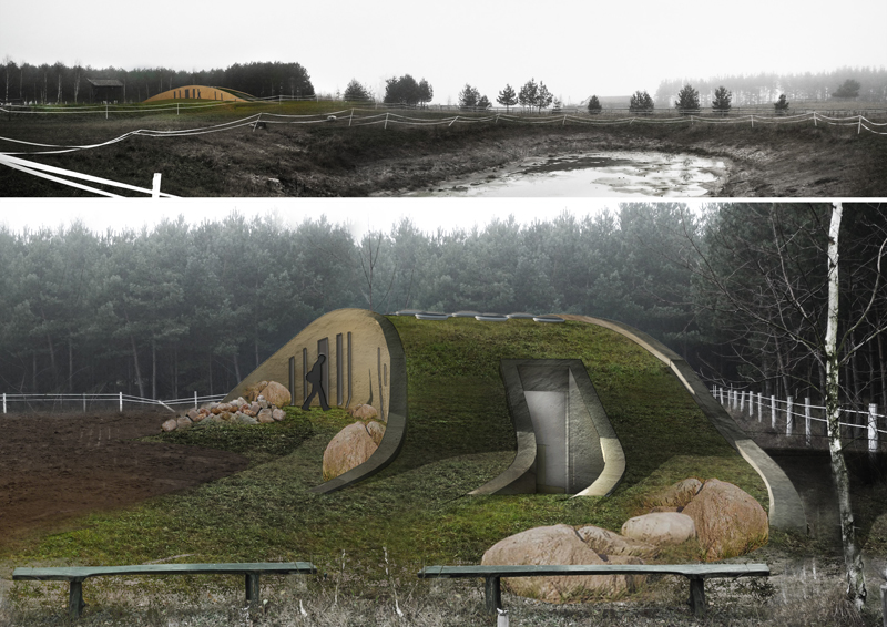 The concept for the building is to incorporate it into surrounding landscape. Softly drawn line of the elevation meets the line of the terrain’s silhouette.
