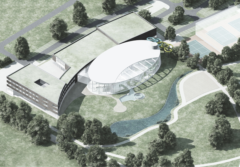 The concept of a water-recreational complex with a hotel and restaurant in Koszalin was prepared for a national architecture competition.