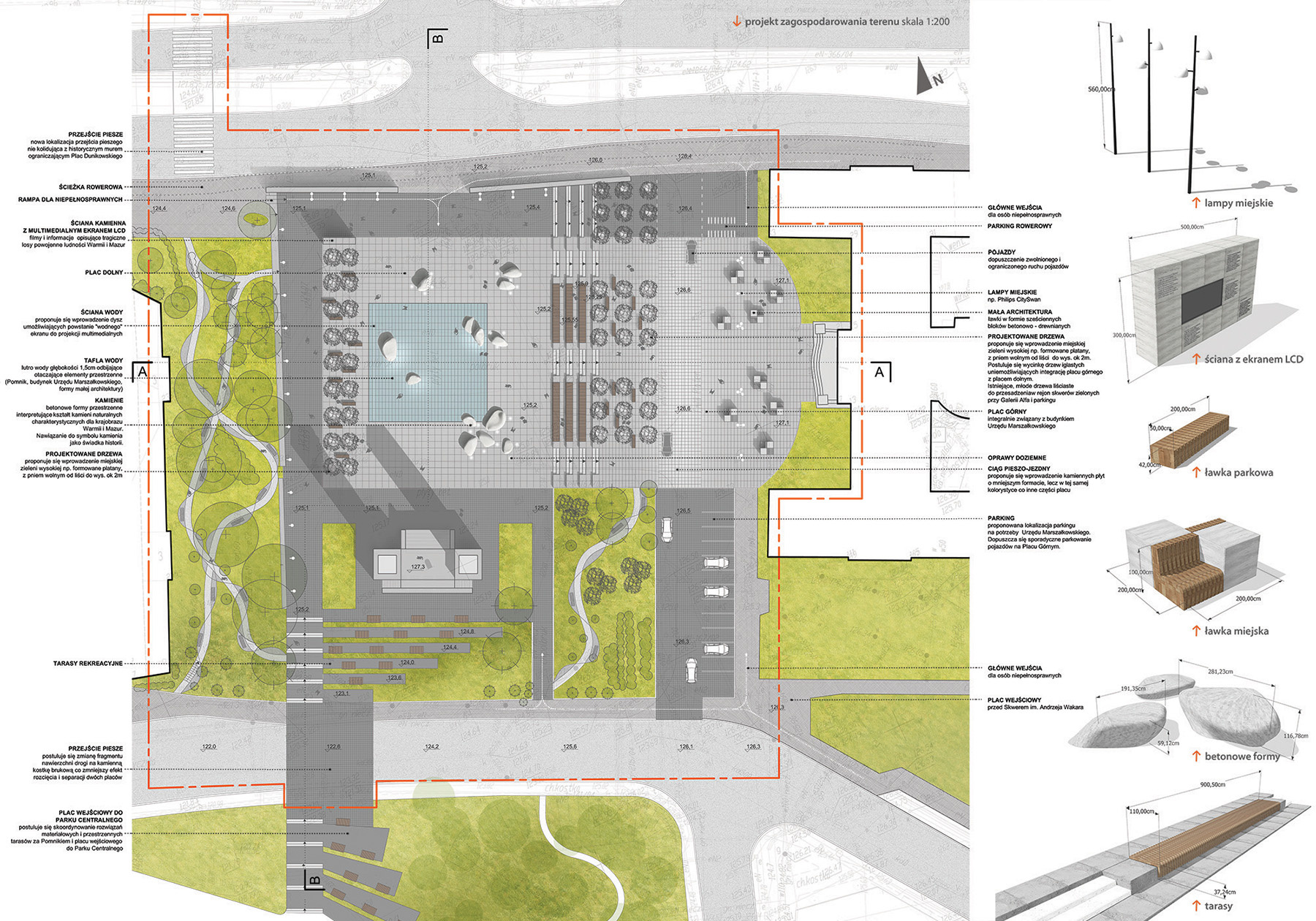 X. Dunikowski Square runs along the main urban route of the city of Olsztyn – Aleja M. J. Piłsudskiego. The new creation of this square will complement the adjacent public spaces of Plac Solidarności and the square by the Home Army monument.