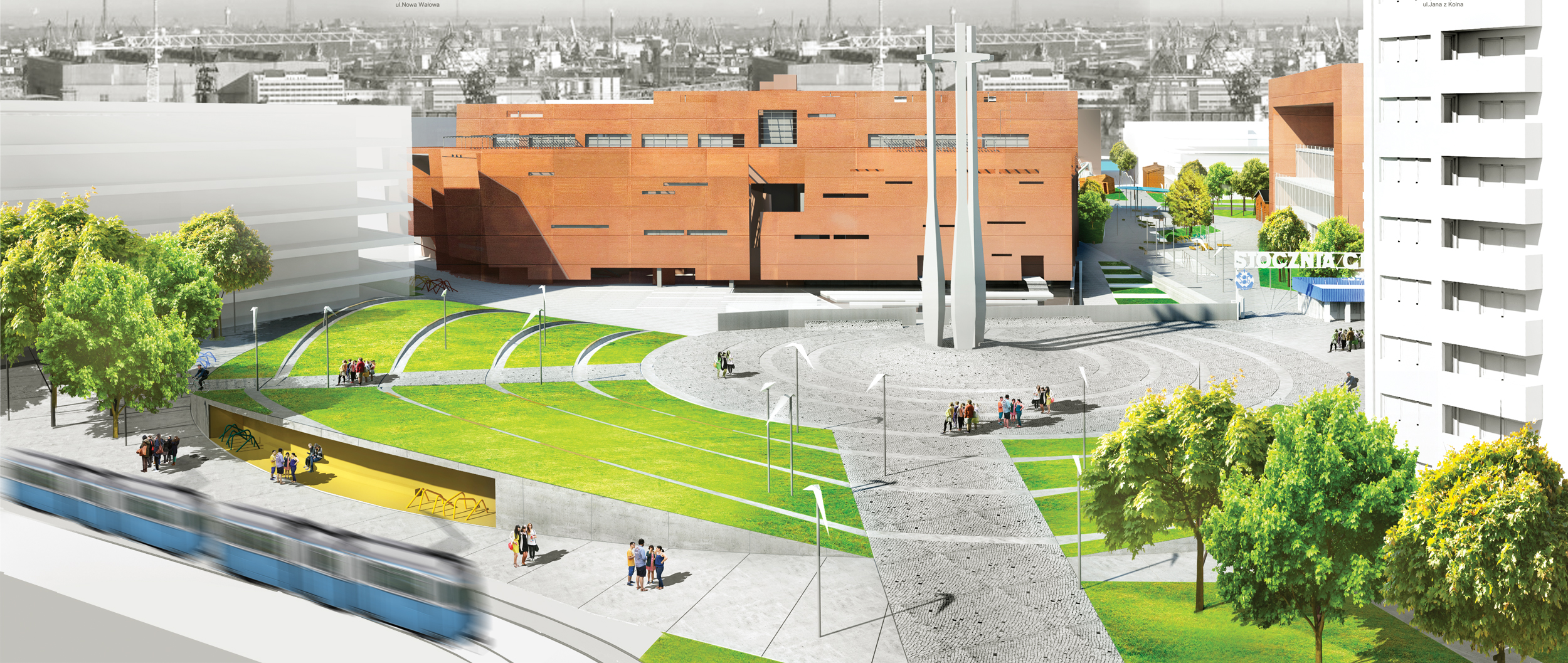 Projekt na całą Drogę do Wolności opiera się o ideę dwóch placów, Placu Solidarności („suchego”) i Placu Wisły („wodnego”), połączonych Drogą do Wolności z Salą BHP jako „punktem równowagi” pomiędzy nimi. Jest to idea swoista dla miejsca – Młodego Miasta, ale nawiązuje do konstrukcji urbanistycznej osi Głównego Miasta: Targu Węglowego i otwartego otoczenia wokół Katowni, drogi – ulicy Długiej i placu przylegającego do rzeki Motławy w postaci Długiego Targu , z „punktem równowagi” kompozycyjnej, funkcjonalnej, kulturowej w postaci ratusza, oraz obramowania całości układu bramami.