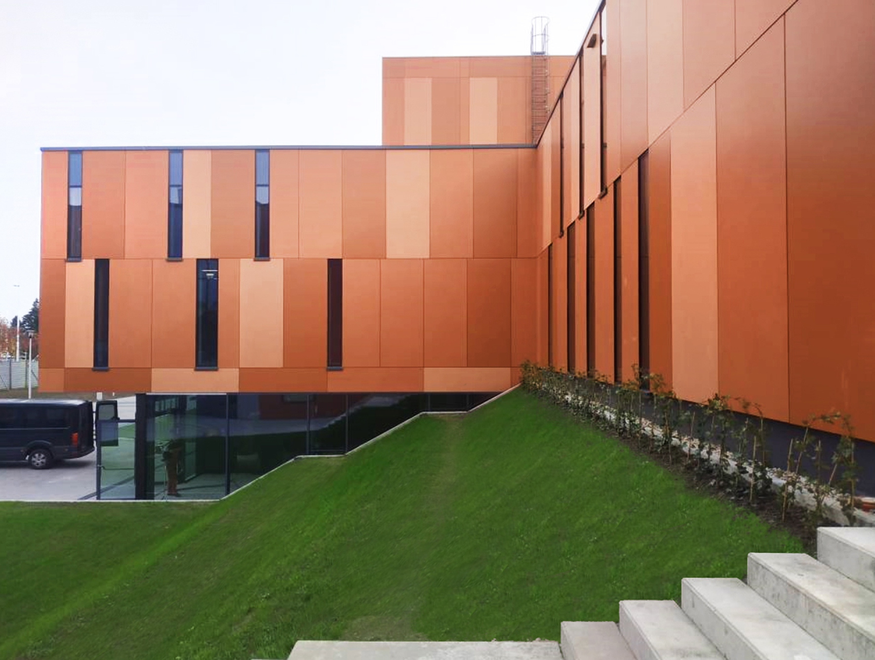 Budynek został połączony z istniejącym budynkiem stadionu co zapewnia wspólne użytkowanie części pomieszczeń (w celu uniknięcia dublowania funkcji). Bryła budynku została optycznie zmniejszona poprzez wycofanie względem elewacji wyższej części kubatury nad płytą boiska. Obiekt zaprojektowany został w technologii BIM.