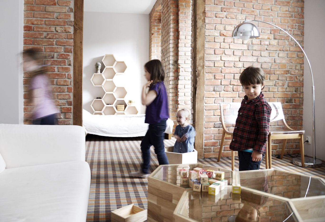Projekt wystroju i aranżacji wnętrz prywatnego mieszkania w Gdańsku. Lokal zlokalizowany jest we wrzeszczańskiej kamienicy, w bezpośrednim sąsiedztwie zabytkowego kościoła. Czerwona cegła, z której wzniesiono świątynię stanowiła główną inspirację w podjęciu decyzji o odsłonięciu ceglanych murów prywatnego mieszkania. Duże okna, z widokiem na kościół zdeterminowały relacje pomiędzy wnętrzem i zewnętrzem.