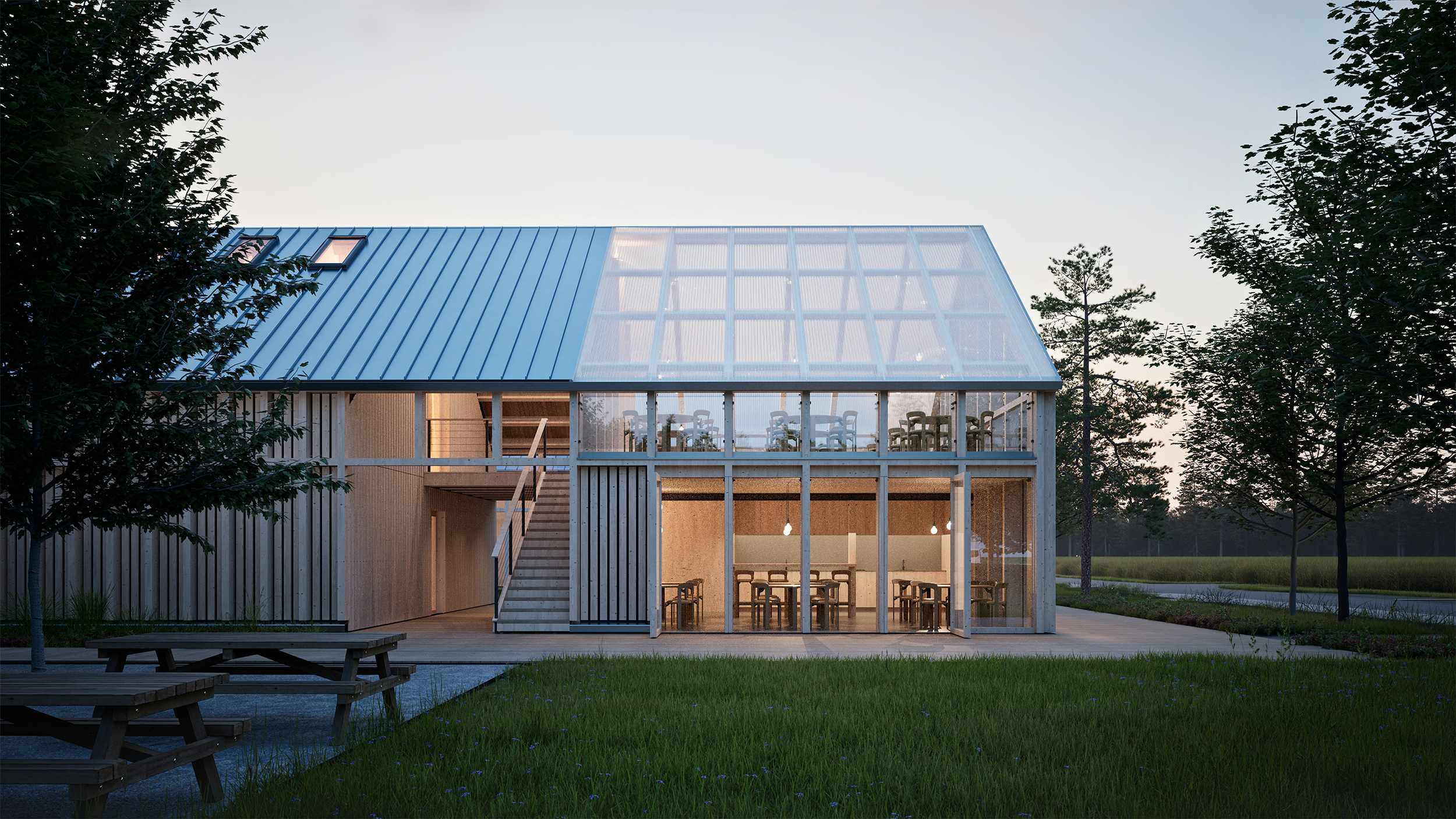 Ekologiczna , drewniana zabudowa w technologii CLT (drewno klejone krzyżowo) oraz BSH (drewno klejone warstwowo). Zaproponowana architektura inspirowana jest tradycyjnym, regionalnym budownictwem szachulcowym. W ramach inwestycji, poza budynkami, powstaną pomosty z odnogami cumowniczymi, pole namiotowe, miejsca dla kamperów, strefy rekreacyjne itp.